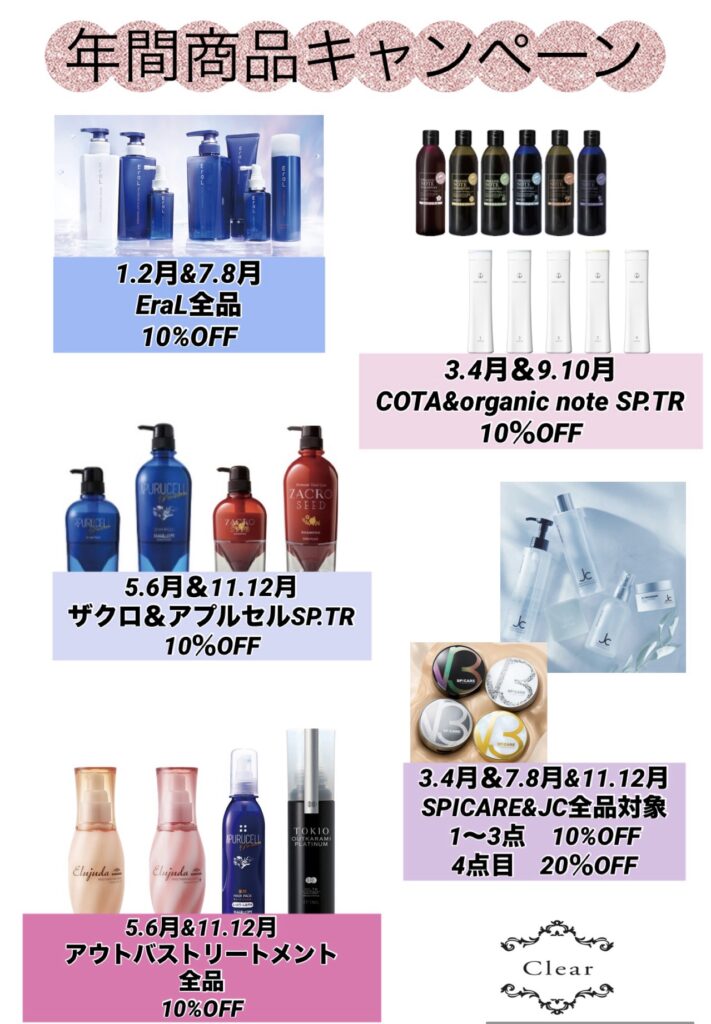 一年間の商品のキャンペーンのご案内です! 1.2月、7.8月 イーラル全品10% […]